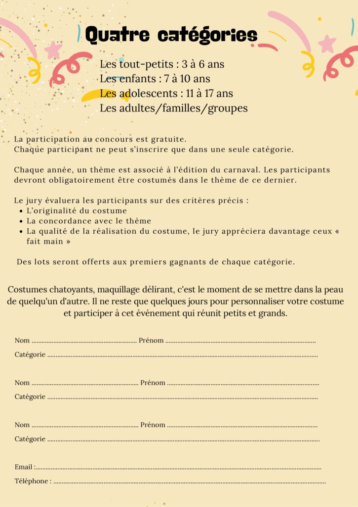 Concours de déguisements sur inscriptions, en 4 catégories :