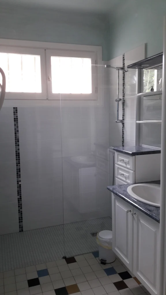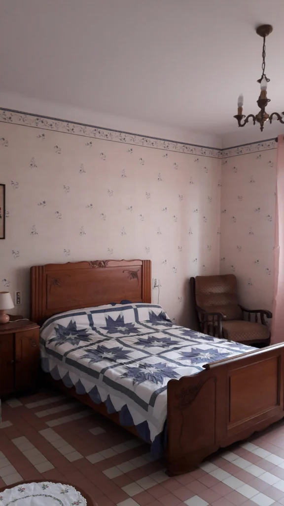 Maison pouvant accueillir 6 personnes dans 3 chambres spacieuses, équipée d’un espace de vie avec une grande cuisine fonctionnelle donnant sur un salon.