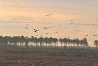 Balades libres ou visites guidées par un garde-naturaliste, partez à la découverte de la grue cendrée. En journée, postez-vous en bordure des champs autour d’Arjuzanx (attention, évitez le bruit, notre Dame grise est très farouche !) , vous pourrez l’observer, elle s’y alimente.